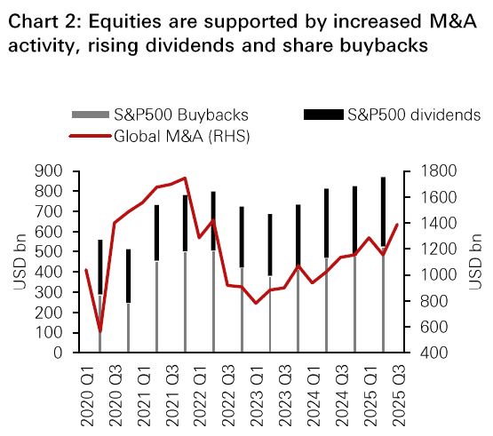 • The re-start of the Fed’s rate cut cycle boosts equities, bonds and gold to new highs. Historically, equities and bonds tend to perform well in the 12 months after the Fed resumes easing. We now expect two more 0.25% rate cuts this year. As the 10-year US Treasury yield is now below our year-end forecast of 4.3%, we reduce our maturity preference for US Treasuries to 5-7 years.