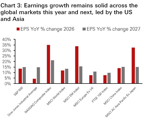 • While the US Supreme Court limited the use of IEEPA, the administration quickly responded with a 15% global tariff using Section 122. Import-reliant sectors may benefit from lower near-term cost pressures and reduced legal uncertainty. Overall, resilient US growth, solid earnings and continued AI momentum support our bullish view on US equities, while total tariff revenue is expected to remain stable in 2026, which is also positive for bonds. We favour US investment grade credit over high yield.
