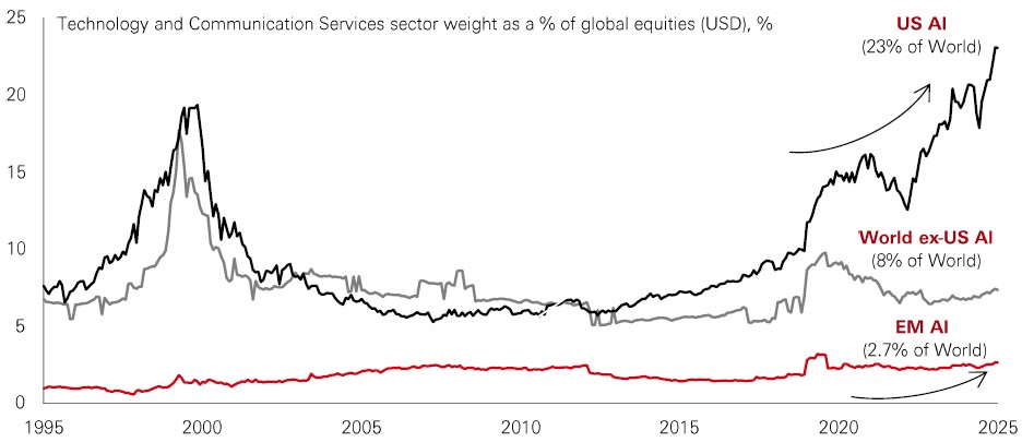 But broadening out doesn’t stop there. It is clear that the AI investment boom isn’t just a tech play, and could spill into other sectors like utilities, construction, healthcare, and basic materials – driving performance in sectors that have lagged this year, and reinforcing a positive view on Asian and other EM stocks.