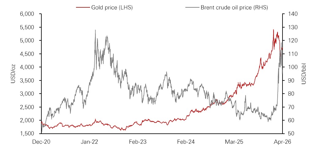 Gold has had a volatile start to 2026. Prices hit a record USD5,415/oz on 28 January before falling by about 20% to below USD4,400/oz on 26 March. The decline was driven by heavy liquidation after the strikes in Iran and the escalation of the Middle East conflict. During this risk-off phase, oil prices surged, the US dollar strengthened as the market’s preferred safe-haven assets, yields rose, and equities fell. Gold did not act as a straightforward “geopolitical hedge”, as investors sold bullion to raise liquidity while the US dollar absorbed most of the safe-haven demand. However, the recent ceasefire has shown that gold can rebound quickly as market stabilise.