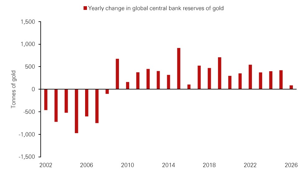 Source: World Gold Council, HSBC Private Bank and Premier Wealth as of 9 April 2026. Past performance is not a reliable indicator of future performance