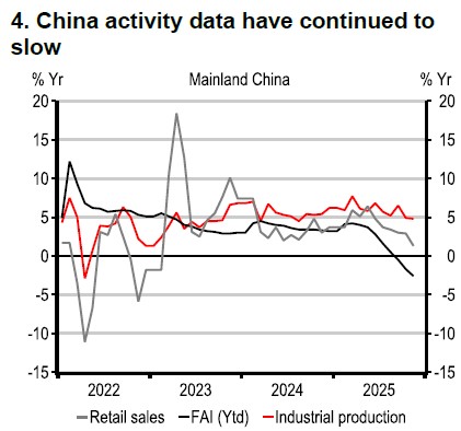AI continues to drive multiple K-shaped expansions. In the US, higher-income households (particularly baby boomers) are driving consumer spending, partly on the back of wealth effects from AI equity holdings. The US is also at the forefront of the surge in AI-related investment. This is benefitting Asian exporters that are most exposed to AI-related electronics production – Taiwan, Korea, and much of ASEAN – and related areas of the AI ecosystem. Such rapid growth in world trade is unlikely to be repeated in 2026, given tariffs and such a high base for Asian exports, but we still expect expansion.